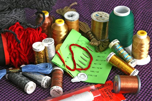 Specialty threads (metallics, woolies, stretch, embroidery, top stitching, perl, monofilament, invisible, yarn, upholstery, and many others) offer a world of creativity and expression for textile artists.